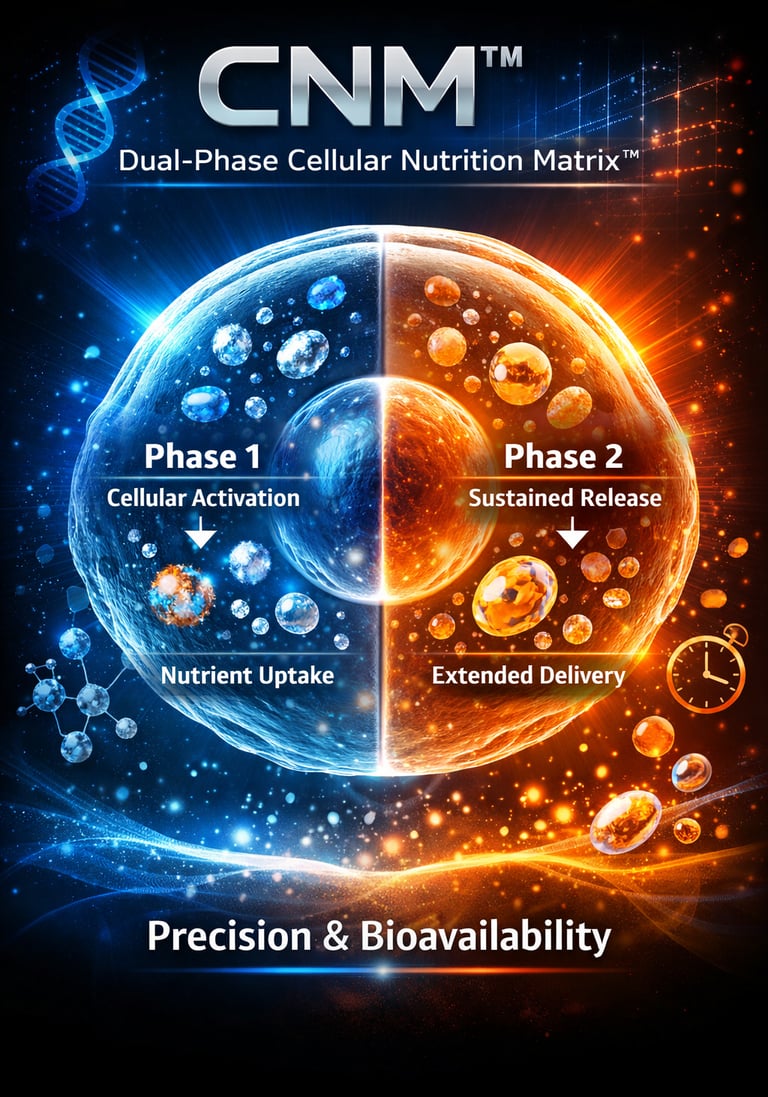 Together, the CNM™ – Dual-Phase Cellular Nutrition Matrix™ and the Advanced Nutritional Matrix™ embody our commitment to responsible innovation, precision nutritional engineering, and development focused on long-term systemic performance.
